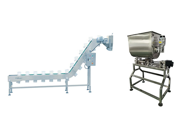 這套設(shè)備是人工稱(chēng)重+碗式提升機(jī)+給袋式包裝機(jī)+灌裝機(jī)組合而成。