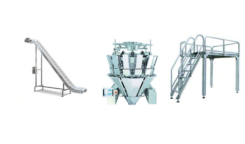 2.使用范圍:牛肉丸、水餃、蝦丸等顆粒狀物料的真空包裝。這套設備是由:真空包裝機+工作平臺+提升機+多頭組合秤組合而成。